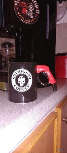 Our GothRider Classic Coffee Mug is perfect for your morning coffee or tea ritual! This ceramic mug not only has a badass design on it, but also a black rim, handle, and inside, so the mug is bound to spice up your mug rack.