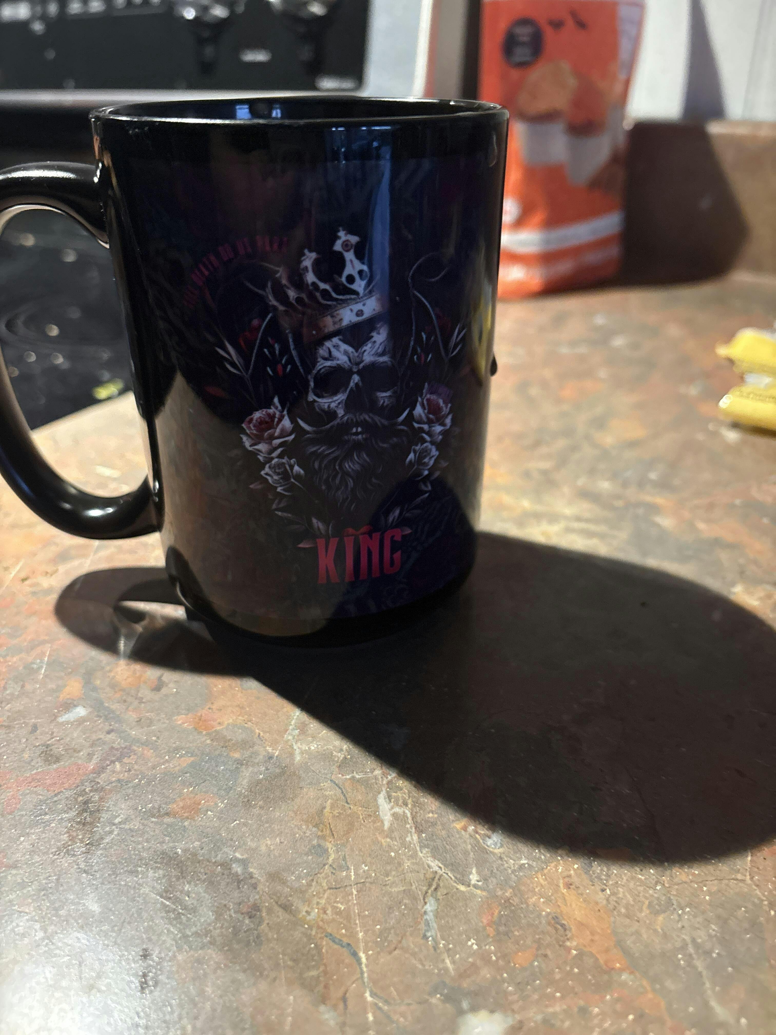 Immergez-vous dans la noblesse et la puissance avec cette tasse noire de 15 oz au design captivant. Représentant un roi en crâne de squelette couronné, elle incarne la force, la loyauté et l’engagement sans faille. L’inscription “L’amour d’un roi est un lien que rien ne peut briser, un devoir sacré, une noble mission, une quête sans fin” donne vie à une philosophie profonde, parfaite pour ceux qui embrassent des valeurs intemporelles.
